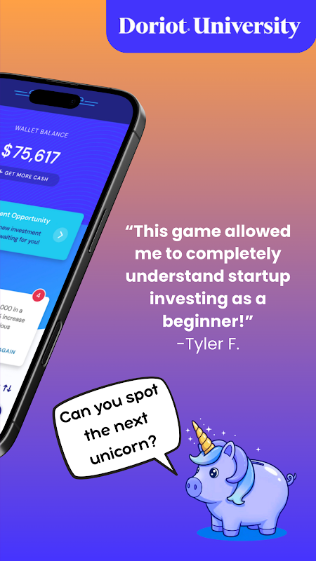 A lo largo del juego, desbloquearás hasta 50 oportunidades para startups, harás un seguimiento de tu portafolio y verás cómo tus inversiones triunfan o fracasan a través de resultados realistas, como salidas a bolsa, adquisiciones o fracasos. Cada "día" en el juego equivale a un año en la vida de una startup, así que verás rápidamente los resultados de tus decisiones. Características principales: