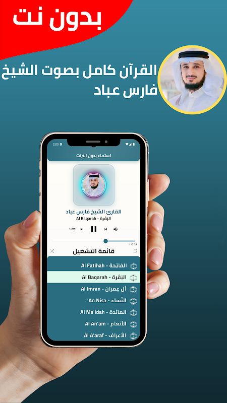 Definición de la aplicación del Sagrado Corán en la voz del recitador Sheikh Fares Abbad sin Internet: