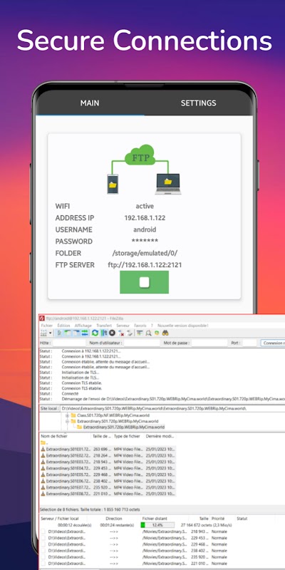 Transfiera archivos a la velocidad del rayo con FTP Fast Server, la solución definitiva para administrar y compartir sus datos de forma segura. Ya sea que sea un usuario profesional o ocasional, FTP Fast Server proporciona una interfaz fácil de usar que simplifica el proceso de transferencia de archivos entre su dispositivo Android y los servidores FTP.