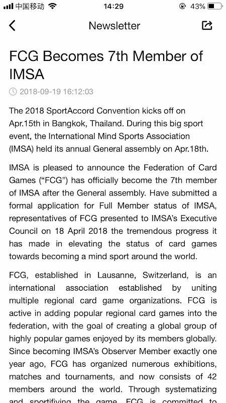 Established in Lausanne, Switzerland, the Federation of Card Games (FCG) is an international association established by uniting multiple regional card game organizations.