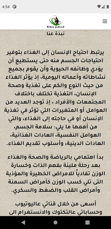 نشر التوعية والثقافة فيما يتعلق بالرياضة والصحة والغذاء والأمور الدة