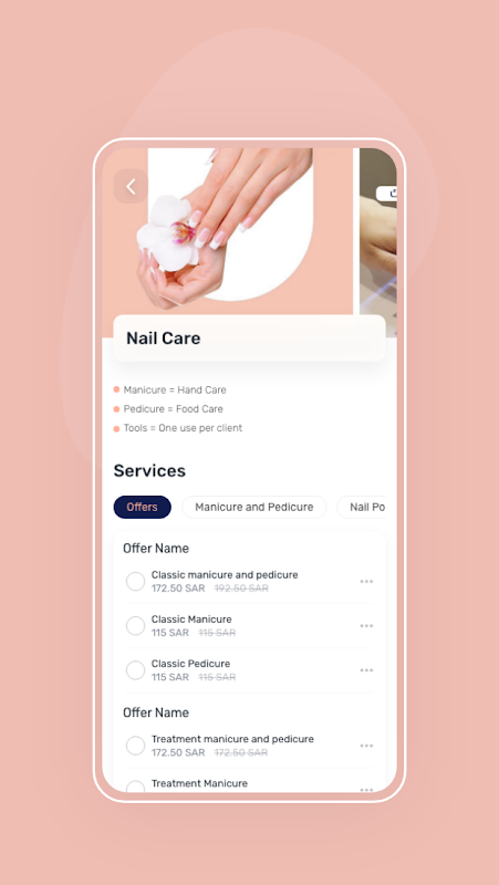 هي علامة تجارية سعودية بارزة لتقديم جميع خدمات الصالون والسبا في ا لمنزل ، والتي تم إطلاقها في عام 2011 وتعمل حاليًا في الرياض - المملكة ا لعربية السعودية. التزامنا هو تقديم خدمات صالون وسبا عالية الجودة في المنزل مع محترف ين على أعلى مستوى ومنتجات رائدة ممتازة. Estilo y archivo. من خلال واجهة سهلة الاستخدام، يمكنك حجز مواعيد صالونك في متناول يد ك، وسيحصل المتخصصون من الدرجة الأولى لدينا على فرصة لخدمتك. من خلال المصممون والمعالجون والمهنيون لدينا، نقدم أكثر من مجرد خدمات الصالون في المنزل، بما في ذلك العلاجات والتدليك وسبا وخدمات العناية بالوجه والعناية بالذكور وسبا الكيراتين وجميع خدمات التجميل على راحتك. في الواقع، جميع خدماتنا متوفرة في المنزل لراحتك. لا تقتصر خدمات الصالون المنزلي على السيدات فحسب، للرجال أي ًضا الاستمتاع بخدمات العناية والسبا في المنزل. علاوة على ذلك، يمكن للناس أي ًضا الاستمتاع بخدمات تطويل الشعر التي قدمناها. 115 ریال سعودي (شامل ضريبة القيمة المضاف ة) حيث ستأتي خبيرة التجميل إلى منزلك وتقدم خدمات صالون من الدرجة الأ ولى بأسعار لا تصدق. هدفنا هو جعل جميع خدماتنا صديقة للجيب مع أقصى درجات رضا العملاء. السلامة في غاية الأهمية بالنسبة لنا. 1 3 خطوة. علاوة على ذلك، فإن عملائنا آمنون للغاية بسبب الخدمات الصحية ومنتج ات العلامات التجارية الرائدة. جميع منتجاتنا محكمة الغلق ويمكن استخدامها لمرة واحدة. نقدم شفافية بنسبة ٪100 في منتجاتنا. لذلك، إذا أراد العملاء استخدام منتجاتهم، فلهم الحرية في حجز المتخ صصين لدينا للحصول على الخدمات فقط.