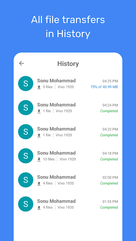 El remitente obtiene un código de conexión para los archivos seleccionados y el receptor ingresa el código para recibir archivos. Eso es todo.