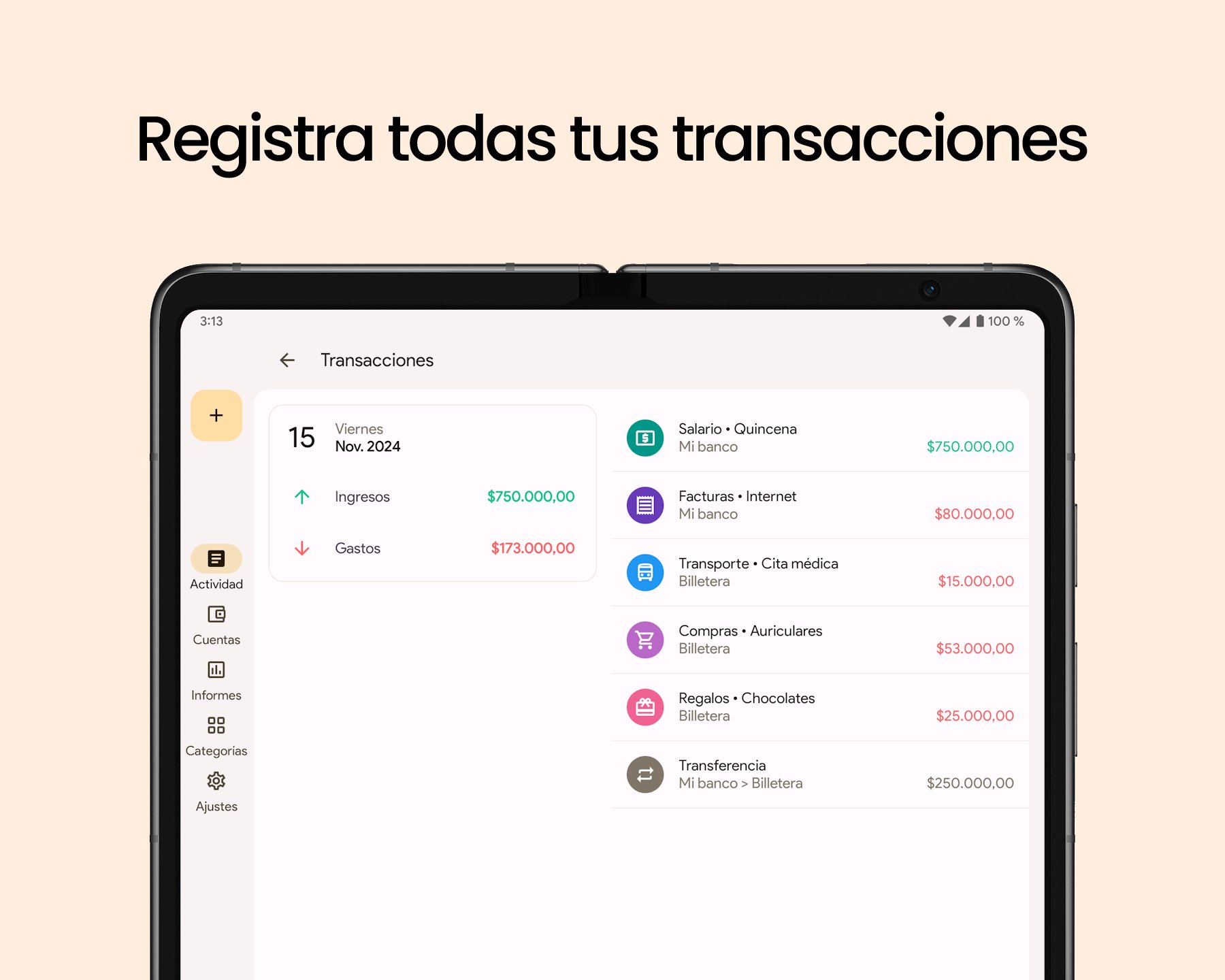 Organiza tus finanzas personales de forma ágil, simple e intuitiva, registra todas tus transacciones y rastrea tus gastos.