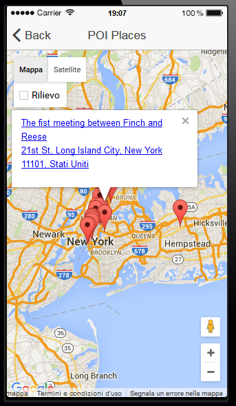 - In POI PLACES you can discover POI (Points of Interest) in NYC and if you click on one of the descriptions you can find the place with the help Google Maps. Click in the upper right icon to have a general vision of POIs in NYC.