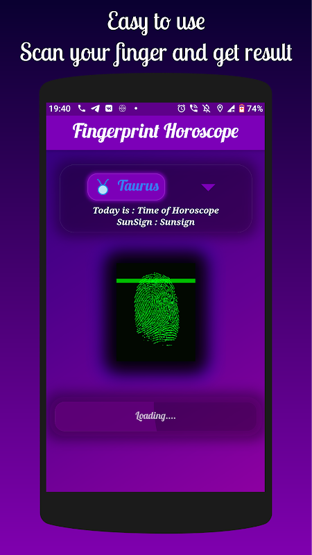 Descubra lo que le depara el futuro utilizando su huella digital y su signo del zodíaco. Obtenga una idea de lo que puede esperar de la vida diaria, el trabajo y la buena fortuna para hoy y mañana con la aplicación gratuita de horóscopo de huellas digitales diario. Siga su signo del zodíaco y observe los horóscopos de amigos y seres queridos.