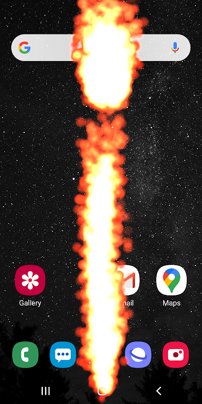 Esta aplicación genial muestra animaciones de llamas muy realistas en la pantalla de tu teléfono. El efecto de fuego aparece en el lugar donde toca la pantalla con el dedo. Esta herramienta utiliza un avanzado sistema de partículas gráficas, gracias al cual el comportamiento, el movimiento y la apariencia del fuego se ven muy naturales. Además, la aplicación monitorea la inclinación actual del teléfono en relación con la Tierra usando un sensor de acelerómetro incorporado y ajusta la dirección de las llamas en consecuencia.
