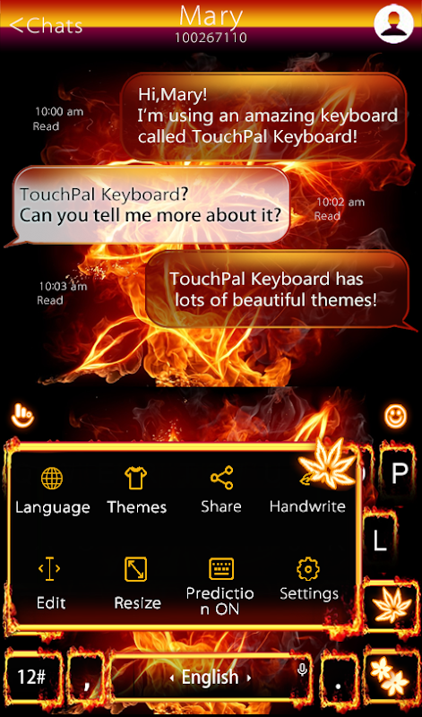 Nuevo Tema libre del teclado del fuego de arce para TouchPal Emoji teclado. Ir, lo consigue!
