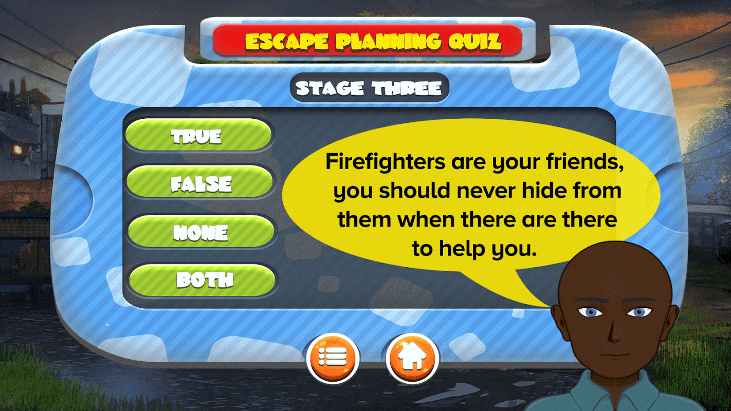 A series of games and quizzes which will teach children about fire safety and how to keep safe from fire. Play: Play different levels while learning in the process. Levels available: Spot Fire Hazards, Guess the Cause of Fire and Escape Planning Quiz.