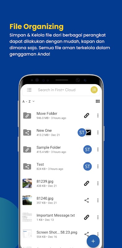 First+ Cloud es un servicio de almacenamiento en la nube de First Media. Guarde el archivo de manera más inteligente, consígalo más rápido. Ya no es necesario almacenar archivos en dispositivos físicos que se dañan y se pierden fácilmente. Con First+ Cloud, se pueden guardar y administrar carpetas, fotos, videos, documentos, grabaciones y otros tipos de archivos de manera conveniente, segura y sencilla.