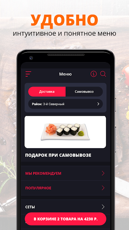 En la aplicación FishKa Roll, puede pedir fácilmente sushi, panecillos y pizza con entrega en Severouralsk y pueblos todos los días de 11:00 a 22:00.