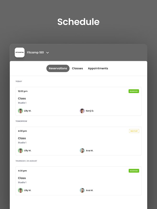 Reservas de clases y gestión de cuentas para miembros de Fitcamp 180