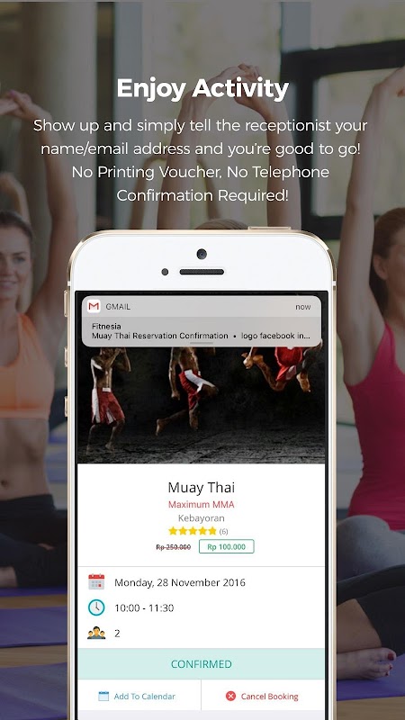 Fitnesia miembros pueden hacer la reserva en tiempo real para cualquier actividad para mucho más barato de lo que normalmente pagar por actividades de acogida y consulta.