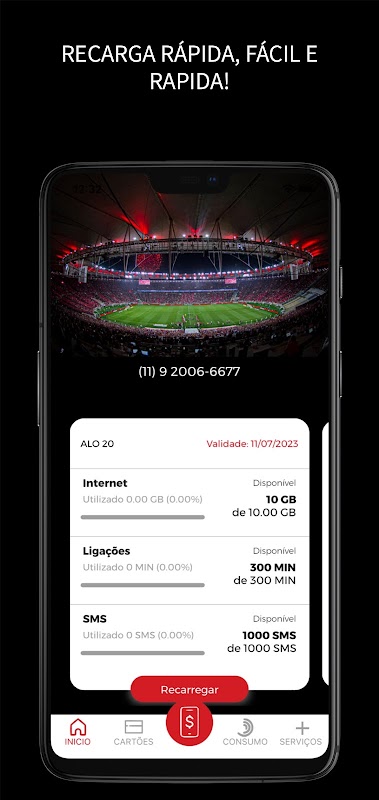 - Historial de recargas realizadas online (aplicación, web y por SMS).