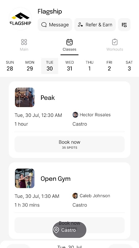 La aplicación FLAGSHIP es una aplicación de reserva todo en uno para su viaje de fitness en FLAGSHIP. Con la app podrás reservar nuevas clases presenciales, ver las clases que tienes reservadas y poder gestionarlas. También podrá editar los detalles de su cuenta y la tarjeta registrada en la aplicación. La aplicación admite la visibilidad del horario de todas las clases disponibles. Haga clic en la pestaña de clases para explorar y comenzar su viaje de acondicionamiento físico con nosotros.