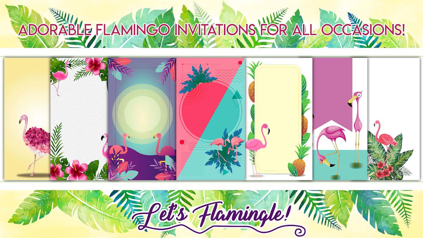 ¿Estás buscando plantillas de invitación divertidas gratis? Instala 💗 Invitaciones De Flamencos 💗 y ten la opción más increíble de tarjetas de cumpleaños personalizadas. ¡Invitaciones de graduación flamenco y tarjetas con fotos en esta aplicación especial de invitaciones de flamenco para editar! ¡Haz tu propia invitación de cumpleaños GRATIS, escribe mensajes de cumpleaños y decora tu invitación a la fiesta de playa! ¡Haz una invitación de boda o invitaciones de piña y flamingo que siempre ha soñado!