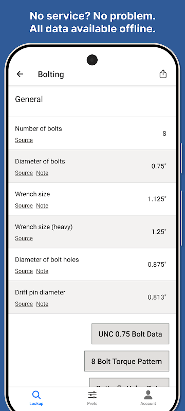 Busque datos de bridas, tuberías y pernos en segundos con Flange Bolt Chart.
