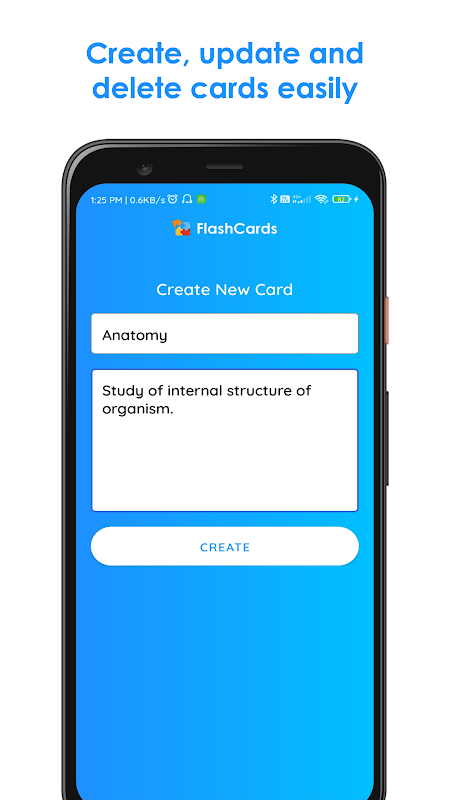 Crea tus propios mazos y cartas. Busque otras tarjetas y estudie. Te permite crear barajas y cartas ilimitadas. Su sencilla interfaz de usuario te ayuda a sentirte mejor mientras estudias. La mejor aplicación de tarjetas de memoria flash para Android. puedes crear mazos para diferentes temas y crear cartas dentro del mazo. Luego puedes estudiar las cartas según los temas (mazos).