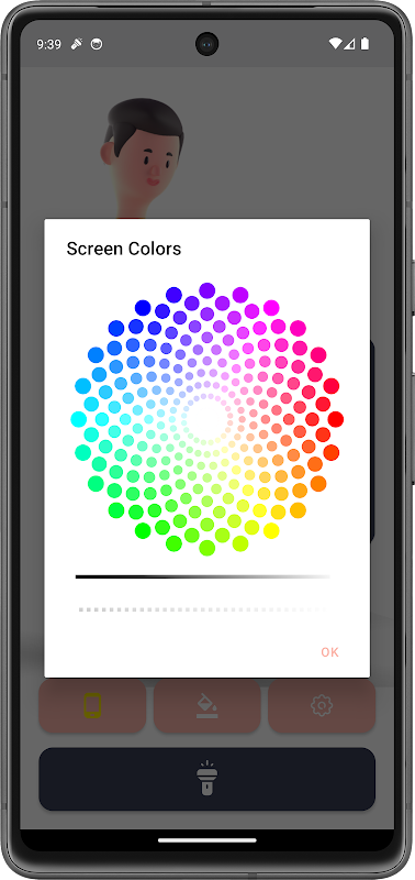 La aplicación de linterna admite luz de pantalla multicolor y control deslizante de brillo. Puede seleccionar diferentes colores según sea necesario para la luz de la pantalla.