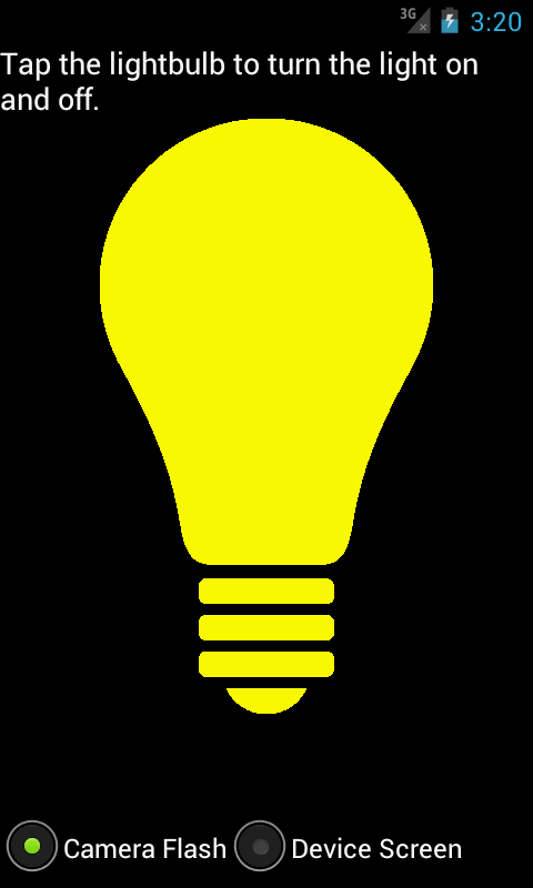 Una aplicación sencilla para los teléfonos que permite que el flash de la cámara o la pantalla del dispositivo para ser usado como una linterna.