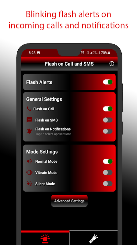 La aplicación Flash Max le permite recibir alertas parpadeantes instantáneas sobre llamadas entrantes, mensajes y otras notificaciones. No perderá ninguna llamada, SMS, MMS o cualquier otra notificación importante, incluso si su teléfono está en modo silencioso o de vibración. Las alertas de flash están completamente optimizadas para un uso eficiente de la batería. Además, también puede ajustar los estilos y configuraciones de parpadeo del flash según sus necesidades. Flash Max también le proporciona una linterna LED súper brillante que se puede usar como antorcha en caso de emergencia. Esta aplicación es totalmente compatible con todas las versiones de Android disponibles actualmente.
