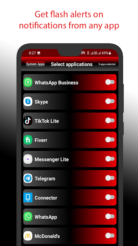 Esta genial aplicación de alertas de flash es muy útil ya que evita que te pierdas llamadas y mensajes importantes durante reuniones donde tu teléfono está en silencio o en lugares ruidosos donde no puedes escuchar el tono de llamada de tu teléfono. Le notifica a través de alertas de flash parpadeantes súper brillantes.
