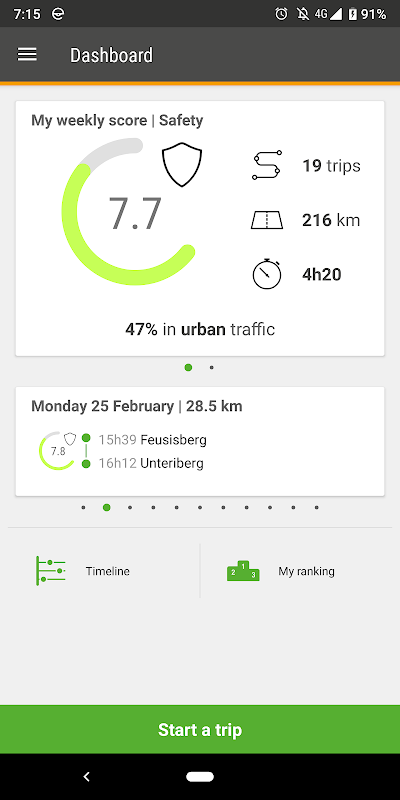 DRIVER fleet.tech utiliza los sensores en el teléfono inteligente para analizar sus viajes y calcular indicadores de conducción. Puede seguir el progreso de estos indicadores, ver informes y detalles de cada uno de sus viajes. La aplicación mide su progreso y le proporciona consejos valiosos para la mejora. Opcionalmente se le compara a una comunidad de conductores.