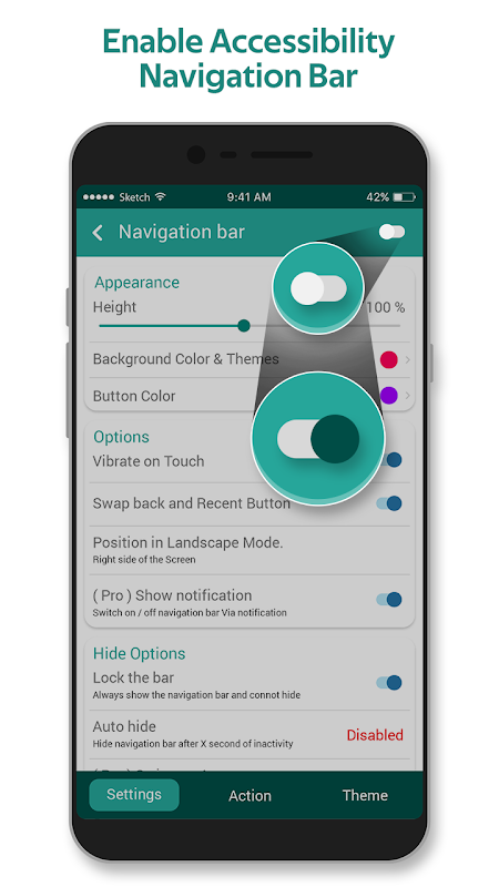 - Active la barra de navegación flotante - Aplicación personalizada como servicio de accesibilidad.