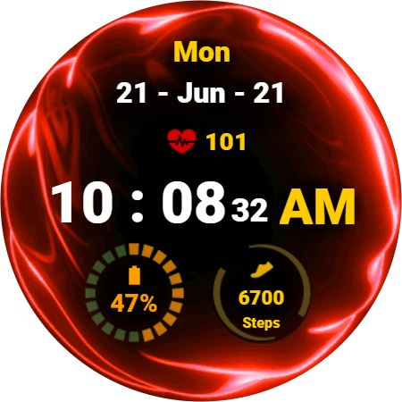 Esfera de reloj digital simple para Wear OS con tema fluido animado. Con un vistazo a la esfera del reloj, podrá ver la información importante (la fecha, la hora, la frecuencia cardíaca, la cantidad de pasos y el porcentaje de batería). El fondo animado crea un efecto genial que te hará destacar entre los demás. Además, el color del indicador de batería cambia según el porcentaje de batería, lo que le permite saber de inmediato cuál es su nivel de batería sin centrarse en los detalles. Del mismo modo, la cantidad de pasos se iluminará en verde cuando alcance su objetivo diario. Es increíble, pero no amigable con la batería. Es compatible con el modo de visualización siempre activo con formatos de 12 y 24 horas.