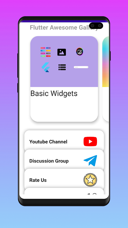 La aplicación FLutter Gallery, que es de código abierto, me ayuda mucho a construir esta increíble aplicación.
