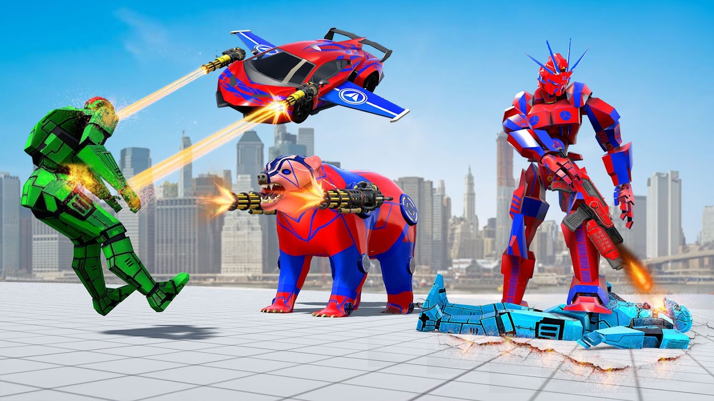 Tendrás el mejor momento de juego con la transformación de coches robot voladores en juegos de robots y juegos de robots de osos polares. En los juegos de disparos de robots voladores, tu robot lucha contra los robots enemigos usando su superpoder de ataque con la pata en este juego especial de transformación de coches voladores. Juega a la batalla de robots en juegos de robots gratuitos que involucran la transformación de robots de coches locos y la transformación de robots de osos polares. Esto se ha convertido en algo en lo que los juegos de guerra de robots futuristas vienen con divertidos juegos de lucha de robots y juegos de robots de osos polares con juegos de guerra de mega robots en un solo lugar. todos los que aman los juegos de robots animales podrán jugar al simulador de coches robot para los juegos de robots voladores. Este es el mejor juego de transformación de coches robot de 2020 para juegos de coches robot voladores.