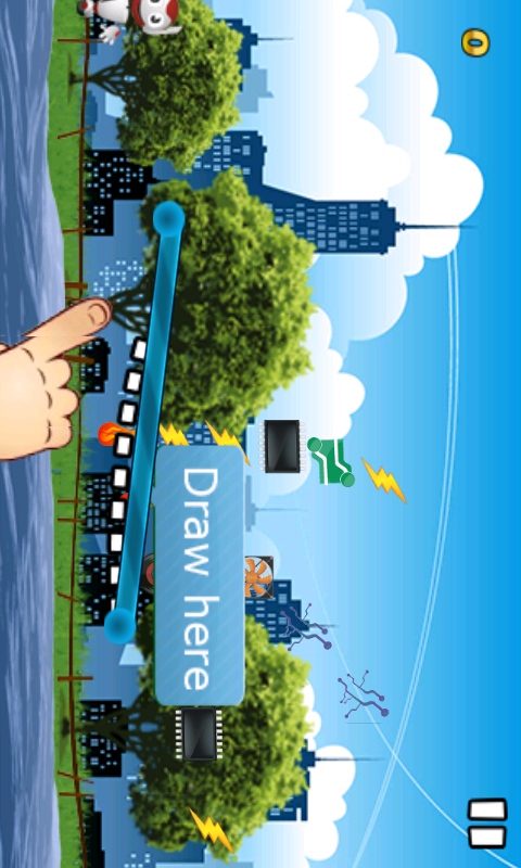 flying robot is one of the most interesting games , it gives you the ability to have fun by drawing trampolines for the robot to make him jump and collect the electronic objects as possible as you can to get the highest score.