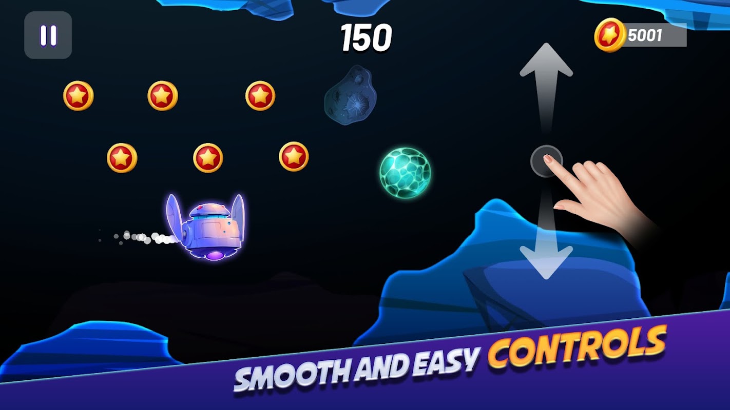 ◉ Recoge un objeto potenciador que aumenta la velocidad del OVNI y destruye asteroides cercanos automáticamente, lo que te ayuda a obtener una mayor puntuación.