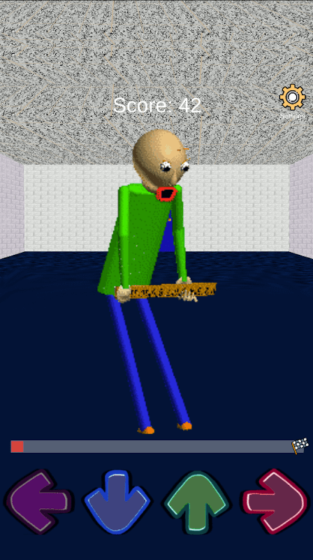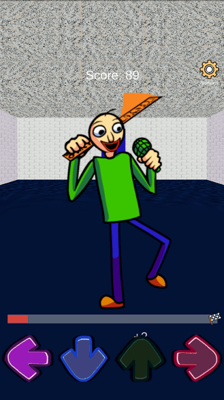 Baldi Mod Test FNF tiene un control simple y comprensible: presione las flechas en la pantalla de su dispositivo y Baldi se moverá y hará un sonido. Para hacerte aún más divertido, después de cada prensa, se le cobrarán puntos y sonarán la música. Por cierto, en la prueba de mod de FNF Baldi puedes desactivar la música y escuchar la voz de solo el personaje principal.