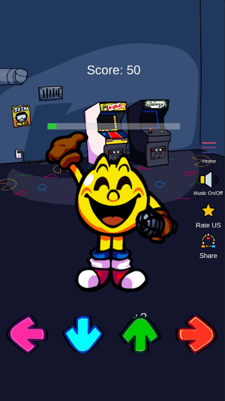 El juego FNF Pacman Character Test tiene sus propias características interesantes. Puedes elegir el estado del héroe que más te guste y canciones para él. Puedes apagar la música de fondo para que solo se escuche la voz del personaje principal. Para ello, basta con pulsar el botón en forma de pitido en la pantalla de su dispositivo. Si te gusta el juego, puedes compartirlo con tus amigos y organizar concursos. ¡Descubre quién es el mejor jugador y puede anotar la mayor cantidad de puntos!