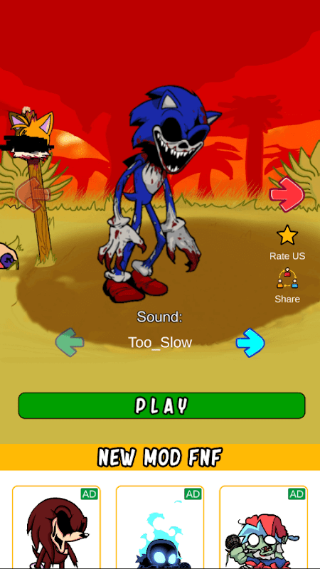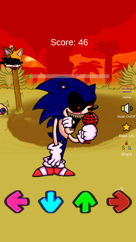 ¿Qué hacer en FNF SONIK.EXE Character Test? Necesitas anotar tantos puntos como sea posible. ¿Cómo hacerlo? Antes de comenzar el juego, seleccione el estado del héroe y la música que más le gusten y luego haga clic en reproducir. Después de iniciar el juego, haga clic en las flechas en la pantalla de su dispositivo. Tan pronto como haga clic en la flecha, el héroe cantará una nota y hará un movimiento determinado, y obtendrá puntos. Si anotó 800 puntos, este es un buen resultado del juego. Si logró obtener más de 1000 puntos, es excelente para jugar FNF SONIK.EXE Mod Test.