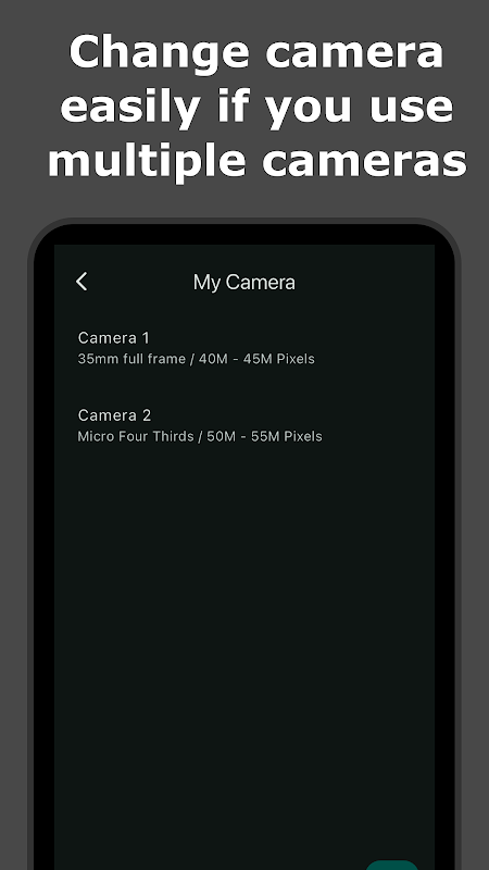 Esta aplicación es una aplicación de cálculo del rango de enfoque de la cámara.