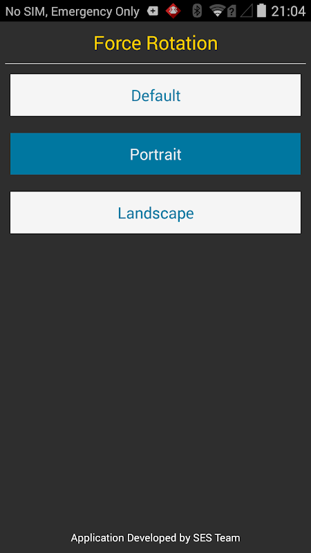 The Application allows the rotation of the device to be set to either