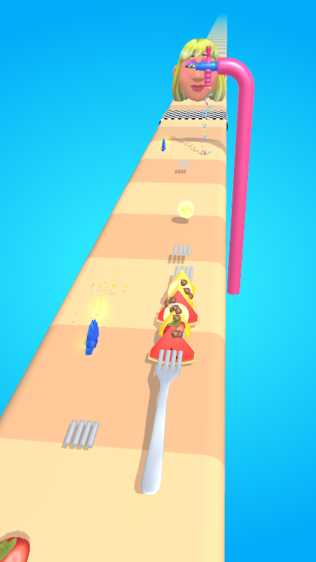 Recoge trozos de tenedor y frutas al mismo tiempo