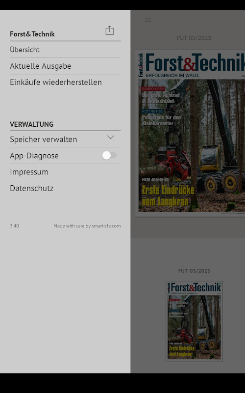 Con esta aplicación, puede leer Forst & Technik en cualquier momento y en cualquier lugar en su tableta o teléfono inteligente. Contiene todas las páginas de la revista en el mismo formato que en la edición impresa.