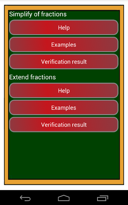 3. "Zisti výsledok" - používateľ nastaví hodnoty a na základe zadaných hodnôt aplikácia Zlomky - matematika vypočíta nezadané údaje.