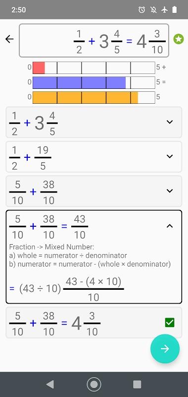 Calculadora de fracciones proporciona una solución detallada fácil de seguir
