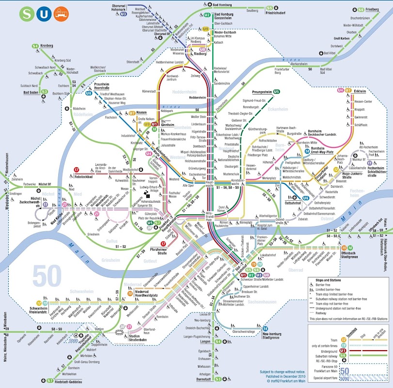 Frankfurt metro / metro / tren Offline Mapa Frankfurt mapa de ruta
