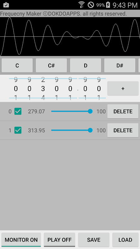 Frecuencia gratuitas conjuntos: C, C #, D, D #, E, F, F #, G, G #, A, A #, B