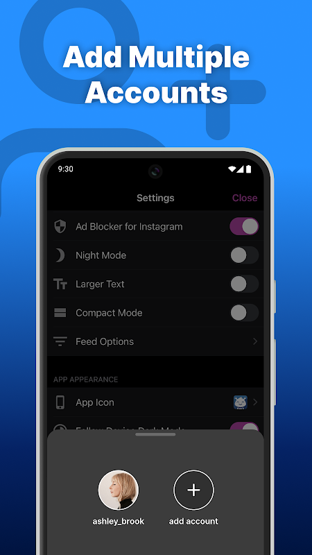 • Cambie rápidamente entre múltiples cuentas de redes sociales