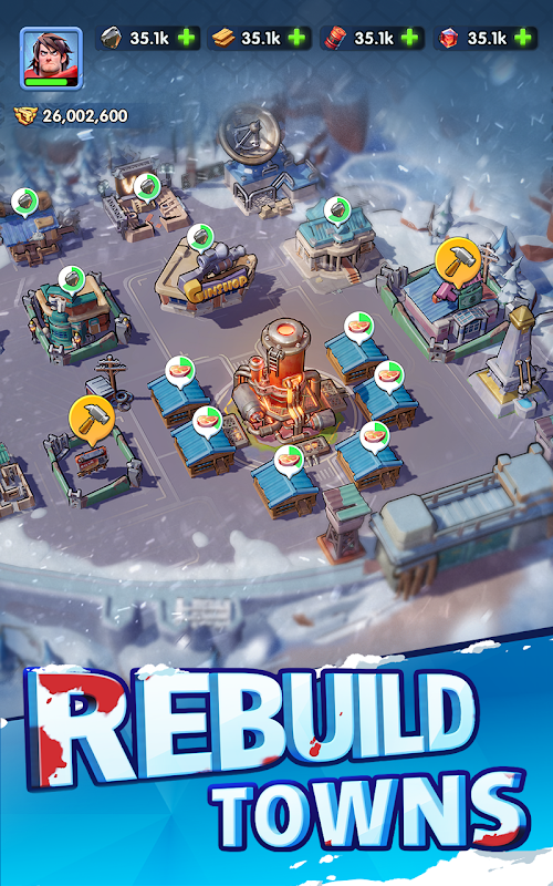 Elimina a los zombis errantes y expande tu dominio. Construye centrales eléctricas más grandes, desbloquea más instalaciones urbanas y trae mayor prosperidad a tu asentamiento. ¡Crea tu propia era!