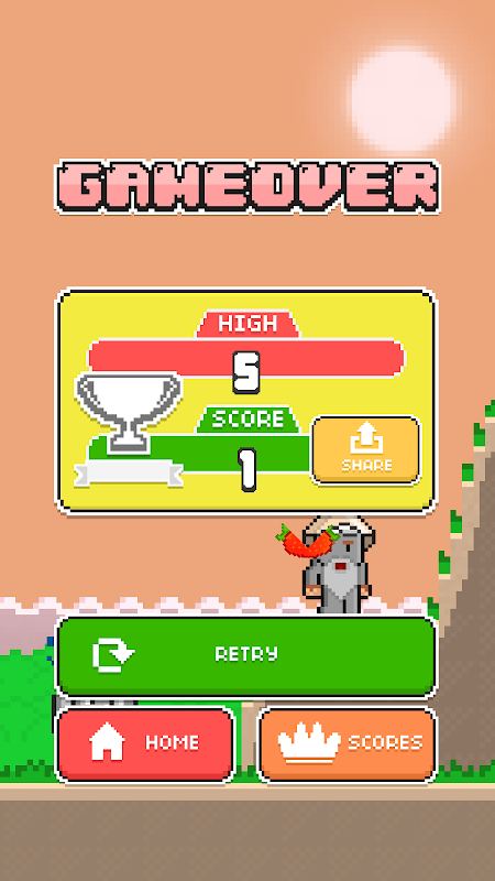 Tap to jump and tap again to hit a falling fruit.