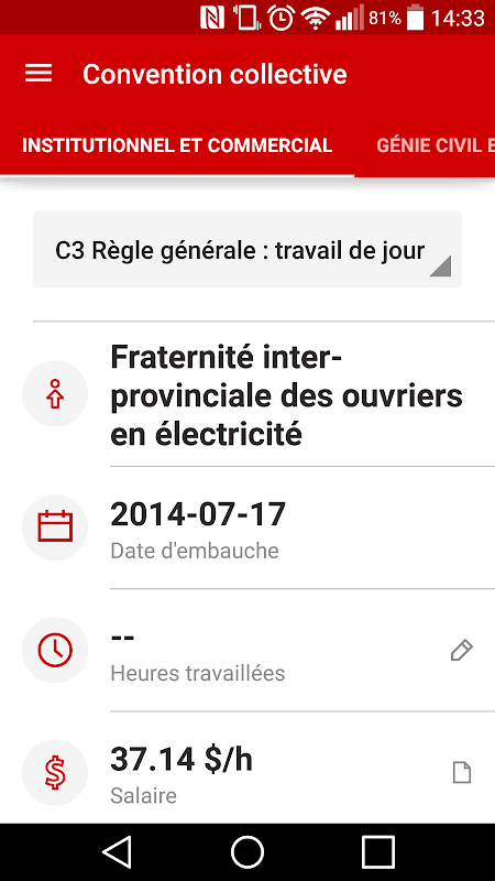 Le travailleur n’a qu’à s’identifier et l’application lui fournit automatiquement ses données personnalisées de convention collective :