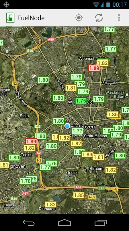 FuelNode muestra los precios de los combustibles en los Países Bajos en el mapa.