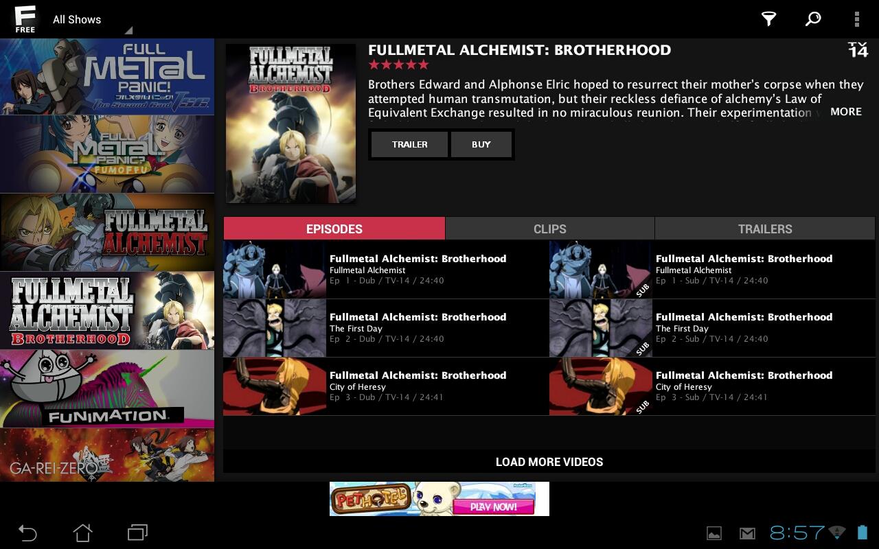 Ver clips, trailers y seleccione episodios completos de su serie de anime favorito.